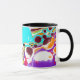 Bleu, vert citron, violet, orange coloré abstrait art numérique tasse à café.