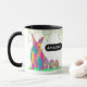 Pâques est ici et il est temps de célébrer de nouveaux débuts avec un lapin de Pâques psychédélique au printemps, des oeufs et une tasse de feuillage. Cette tasse colorée de Pâques est un excellent moyen de répandre la joie du printemps avec vos amis et votre famille. Personnalisé rose violet turquoise vert jaune et noir thème de Pâques cadeau pour les amis et la famille en utilisant la personnaliser et facile à utiliser modèle. OEufs d'art multicolores adorables illustrations uniques motifs dans des couleurs vives abstraites psychédéliques vives artwork original de l'artiste Catherine Sweetman.