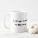 Cette tasse de café en céramique est montrée avec un chaton mignon dans un cadre d'affaires imprimé avec un texte qui dit, "Mettons-nous au travail". Customiser ou acheter tel quel.