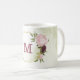 Magnifique tasse à café avec cabernet fleurs violettes et roses et feuilles vertes