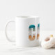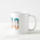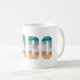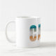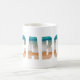 This ceramic coffee mug is shown with a lettered Cabo beach print.