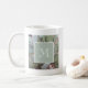 Tasse à café Monogram Cactus du désert, avec une image verte Prickly Pear et une bordure verte et blanche. Avec du texte personnalisable blanc, vous pouvez ajouter votre propre initiale. Idéal pour ajouter une touche du désert sud-ouest à votre boisson chaude préférée.