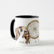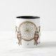 Un design d'attrape-rêves avec des garnitures dorées et marron qui comprend un cercle de bambou rond, une toile de vie avec des plumes de tons marron et des perles rouges, un thème de mariage pour personnaliser