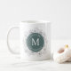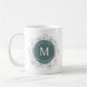 Élégant, moderne, mug personnalisé pour garçon d'honneur en argent et vert sauge avec nom et dentelle botanique dorée.
