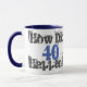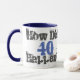 Le cadeau pour les 40 ans. Quarante ans. Comment en est-on arrivé à 40 ans ? est le message graphique gras sur cette tasse bleue et blanche.
