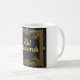 Un élégant Aïd Moubarak a conçu Mug avec un cadre floral doré complexe sur un arrière - plan noir. La typographie luxueuse et l'ornementation détaillée créent un look classique et élégant, parfait pour les célébrations de l'Aïd, les cadeaux à thème islamique et la décoration festive.