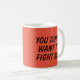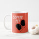 Coffee 1st, avec l'image de gants de boxe, l'autre côté dit "Vous ne voulez pas me combattre."