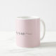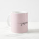 Tasse personnalisée avec monogramme simple et minimaliste rose pastel au style d'écriture manuscrite. Ces créations présentent votre prénom dans une jolie typographie de signature avec des fioritures et un lettrage manuscrit sur un fond rose pastel ou rose poussiéreux. Celles-ci sont faciles à personnaliser. Cadeau de bienvenue élégant et féminin, également pour un anniversaire, la fête des mères, un mariage, une fête d'anniversaire pour les 16 ans, une douche de mariée, une baby shower, une fête de remise de diplôme et c'est pour la fille qui aime les choses uniques et élégantes.