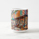 Un cadeau parfait pour les amateurs de voyage et de café. La peinture à l'aquarelle saisit de façon saisissante un café de Lagos, au Nigeria, qui met en valeur l'atmosphère animée et animée de la ville. L'extérieur du café est moderne et coloré, orné de motifs géométriques et de textiles africains lumineux, reflétant le riche patrimoine culturel de la région. Situé dans une rue animée, le café dispose d'un coin salon extérieur sous des parasols colorés, où les habitants et les touristes peuvent être vus profiter de l'environnement urbain animé. A l'intérieur, le café est à la fois animé et éclectique, avec des murs décorés d'art et d'artisanat nigérian contemporain. Le mélange de mobilier en bois traditionnel et de design moderne crée un espace unique et accueillant. La palette de couleurs est dominée par des rouges, des jaunes et des verts audacieux, incarnant l'atmosphère énergique et spirituelle de Lagos. Les clients s'engagent dans des conversations animées, en dégustant des plats locaux et du café dans ce cadre dynamique.