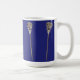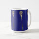 Tasse de sport de crosse créative avec bâton de lessive et motif de design de balle sur le terrain de bleu royal.