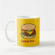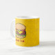 Illustration de dessin animé Cheeseburger. Les aliments indésirables entourent les icônes jaune motif arrière - plan. Texte personnalisé des deux côtés.