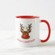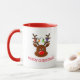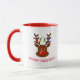 Une tasse à café de vacances est présentée ici avec une impression festive de Rudolph de Noël. Customisez cet objet ou achetez tel quel. Image stock