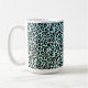 Cette tasse de café en céramique est montrée avec un empreinte de léopard turquoise couleur. Customisez cet objet ou achetez comme indiqué.