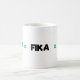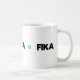 Fika, le mot pour "prendre une pause café" en suédois imprimé sur une tasse avec le drapeau suédois.