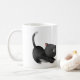 Une tasse "café droit miow !" avec un chaton noir pour ce chat et amoureux du café dans votre vie.