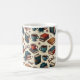 Un design à thème intellectuel avec des livres, des tasses à café, des lunettes et des couvertures douillettes dans un motif répétitif. Idéal pour les amateurs de café en librairie !