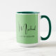 Script Élégant Personnalisé Ajoutez Votre Nom Modèle Tendance Sage Vert Combo Mug Café.