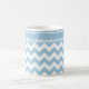 Une tasse à café design à personnaliser, avec un motif chevron bleu clair et blanc. Si vous préférez ne pas ajouter de texte à votre Mug, il vous suffit de supprimer le texte et de déplacer le motif vers le haut jusqu'à ce que la bande bleue ordinaire disparaisse, en utilisant le bouton personnaliser.