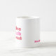 Vous cherchez le cadeau idéal pour l'enseignant de votre enfant ? Cette tasse à café personnalisable "Typography Coffee Teach Repeat" est une façon douce et élégante de montrer votre appréciation ! Avec un design moderne aux teintes roses et rouges, elle est à la fois tendance et pratique - parfaite pour un enseignant qui aime son café du matin. La typographie audacieuse et ludique ajoute une touche amusante, en faisant un rappel quotidien de leur passion pour l'enseignement. Vous pouvez même la personnaliser pour une touche supplémentaire spéciale. Un cadeau simple et réfléchi pour égayer leur journée !