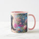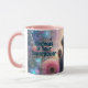 Mug café personnalisé - Nom ou message personnalisé | Idée cadeau unique - Jolie tasse à café fleuri rose avec un adorable chiot en carlin noir et message stimulant.
