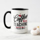 C'est la tasse parfaite pour un enseignant qui aime aussi boire du café. C'est un design amusant en noir et rouge avec les mots "Coffee Makes Teaching Possible" et tasse de café. Cela ferait un grand cadeau pour l'appréciation des enseignants, de retour à l'école, pour l'anniversaire d'un enseignant, un cadeau de fin d'année ou un cadeau de Noël. La tasse peut également être personnalisée en changeant le nom qui apparaît sur le devant de la tasse.