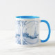 Une tasse aux faux carreaux de l'art bleu et blanc vintage d'un voilier naviguant dans le port. Restauré à partir d'une tuile antique.