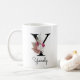 Mug initiale bohème rose monogrammé, cadeau de Noël ou d'anniversaire idéal pour une fille, maman, tante ou sœur. Personnalisé avec le monogramme de la lettre Y et un nom. D'autres lettres sont disponibles dans ma boutique.