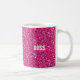 Calligraphie de la tasse de café arrière - plan rose étincelante. Le texte du patron peut être personnalisé.