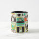 Blanc et noir 11 oz. mug combiné avec une image de caméras rétro colorées sur beige. Voir la fiole, la plaque de papier et les dessous de verre correspondants. Voir l'ensemble de la collection Nifty les années 50 Mug dans le FOOD/BEV | Section Plats.