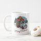 Célébrez la saison des fêtes avec cette charmante tasse à café présentant un camion classique des années 50 habillé pour Noël. Le camion rouge vintage est chargé d'arbres de Noël festifs, de cadeaux emballés et de détails enneigés qui apportent une chaleur nostalgique à votre café du matin ou votre chocolat chaud. Le design capture parfaitement la magie de la saison, ce qui en fait un excellent cadeau pour les amateurs de vintage et les passionnés de fêtes de fin d'année. Que vous buviez au coin du feu ou que vous partagiez une tasse de joie avec votre famille, cette tasse ajoute une touche de joie de Noël rétro à toutes les réunions.