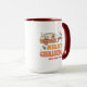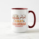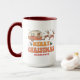 Camping Merry Christmas Reindeer Nom personnalisé Coffee Mug présente le texte "Joyeux Noël" dans une typographie rétro avec une caravane décorée festive tirée par des rennes et accentuée de flocons de neige et de saints. Personnalisez avec votre nom personnalisé pour un super cadeau. Un cadeau parfait pour la famille et les amis pour Noël et les vacances. Conçu par Evco Studio www.zazzle.com/store/evcostudio