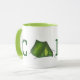 Mug présente une illustration originale d'une tente verte, formant le A dans le mot CAMP. Idéal pour tous les amateurs de randonnée, de camping ou de plein air !