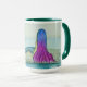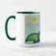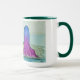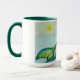 Caneca com ilustração de sereia ao sol pintado à mão em aquarela.