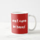 Canette rouge avec la phrase « de la you burn the donut ? I don't care. BE happy ! ».
