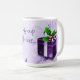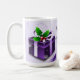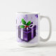 Profitez de votre café du matin pendant la saison des fêtes avec cette Mug de café-cadeau de Noël violet festif. Le design de la tasse à café présente un cadeau de Noël violet vibrant orné de baies sèches et de chutes de flocons de neige contre un élégant parchemin et arrière - plan feuille avec le dicton "Ma tasse de joie". Autres cadeaux et objets de vacances disponibles avec ce design aussi.