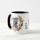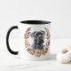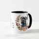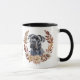 Une jolie couronne d'automne dans les tons marron cannelle, tan et crème entoure l'aquarelle d'un beau chien noir Corso Cane. L'image est imprimée deux fois sur la tasse, avec votre texte personnalisé entre eux.