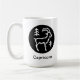Capricorne - Signes du Zodiaque - 22 décembre au 20 janvier. Représentation graphique d'une chèvre et d'arbres dans un cercle noir.