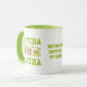 Fun CAPTCHA DA MATCHA Fun Latte Drinker Mug avec TEXTE PERSONNALISABLE, pour les buveurs de matcha latte tea. Le design montre trois images de matcha latte café et feuilles entre le texte vert gras lisant CAPTCHA DA MATCHA. Le texte au milieu est PERSONNALISABLE afin que vous puissiez PERSONNALISER avec votre propre libellé ou supprimer.