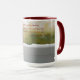 C'est une tasse 15oz comportant une de mes images d'un cardinal masculin qui s'asseyait sur notre balustrade de plate-forme pendant une tempête de neige. La neige ralentissait et le ciel commençait à éclairer. Juste hors de l'image il y a un conducteur et le cardinal s'était arrêté par pour une morsure pour manger. La citation est une que j'ai proposé après voir beaucoup de citations en ligne au sujet des cardinaux étant un signe qu'aimé qui a passé était venu pour visiter.