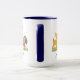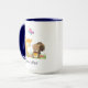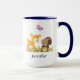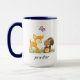 Une tasse avec une jolie illustration montrant un cerf de bébé et un petit écureuil tenant une glande et un papillon volant au-dessus de leur tête. Ces adorables créatures boisées se tiennent debout sur une herbe avec quelques champignons fantaisistes à leurs pieds.