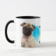 Un portrait d'un adorable chien de Carlin est la caractéristique de deux côtés de cette tasse. Chaque image est placée sur un arrière - plan à bec bleu vif. Entre les deux images se trouve le texte qui décrit ce compagnon loyal et aimant, avec "le chien CARLIN" en noir en bas. Tout le texte est facilement customisé à tout ce que vous voulez afin que vous puissiez décrire votre propre ami loyal.