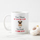 Bouchon de Carlin amusant personnalisable pour commencer la journée avec une bonne humeur. Personnalisez la tasse de carlin en ajoutant le nom de votre carlin et en rendant cette tasse de carlin unique. Au centre de la tasse de carlin, un carlin de style dessin animé vous regarde en gardant un oeil sur vous pendant que vous sirotez votre café. N'oubliez pas que vous n'êtes qu'un majordome au service de votre carlin. Le carlin est une race de chien merveilleuse qui remplit vos journées d'amour. Entrez dans le monde des carlins avec notre tasse de carlin personnalisable. Commencez votre journée avec un sourire avec notre tasse de Carlin!