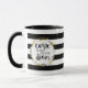 Des rayures modernes de noir et blanc sont l'arrière - plan de cette drôle de tasse qui nous rappelle de saisir la journée. La citation "Carpe the heck out of this diem" est encadrée d'une couronne naturelle et sage de fleurs et de verdure et fait une grande tasse de café pour commencer votre journée et le matin café avec.