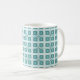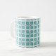 Grosse tasse à motifs Carrés de charme géométrique rétro dans turquoise. Cette tasse à motifs rétro est le choix idéal pour ceux qui souhaitent boire leur café du matin en toute élégance ! Motif original créé par Superstarbing Designs.