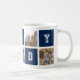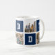 Une tasse de collage photo sportive avec le mot "papa" dans une police de style collégial varié contre les couleurs carrés modifiables que vous pouvez changer du bleu à n'importe quelle couleur de votre choix (cliquez sur personnaliser, sélectionnez les calques rectangle et changer chaque couleur de remplissage). Parfait comme cadeau pour la Fête des pères de l'anniversaire de papa. Photographie d'espace par © Storytree Studios, Stanford, CA *Veuillez noter que le filigrane Zazzle qui apparaît dans l'aperçu du zoom n'apparaîtra PAS sur le produit imprimé final. © Bois de rose et agrumes