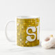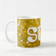 Mug avec un amusant et stylisé "look de mosaïque de miroir disco" imprimé motif dans les tons jaune or et blanc, et de style rétro texte. Peut être utilisé comme arrière - plan pour vos propres textes, images et idées. Veuillez noter qu'il s'agit d'une image d'art numérique imprimée, elle ne brille pas ou ne contient pas de véritables miroirs ou parties scintillant.