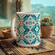 Cette conception comprend un motif géométrique avec un motif en losange extensible avec des bords flous et plumés rayonnant vers l'extérieur. L'effet global combine symétrie, énergie et profondeur — un équilibre entre l'atmosphère tribale et la géométrie moderne en turquoise, gris et crème.