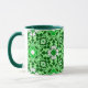 Mug dans un motif marocain Art Déco à base de fleurs stylisées et de feuilles - vert émeraude et citron vert profond contre un arrière - plan pastel vert citron, accentué de blanc