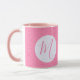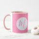 Design féminin rose et blanc dans le fractal de carrés ondulés. Ajoutez une initiale pour une personnalisation ou un cadeau parfait. La tasse fait un beau cadeau pour son bureau à domicile ou pour une pendaison de crémaillère.