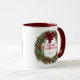 Célébrez les vacances avec une touche de ferme festive en utilisant cette charmant tasse de Noël. La couronne d'aquarelle classique de pin, de houx et d'eucalyptus est attachée avec un grand arc en plis de buffle rouge pour un style de vacances intemporel. Idéal pour siroter du café, du thé ou du cidre chaud, cette tasse fait un délicieux cadeau de saison pour les proches ou un joyeux ajout à vos ustensiles de cuisine de vacances. Personnalisez-le pour un souvenir unique qui allie confort de ferme moderne et tradition de Noël.
